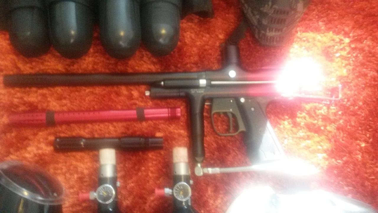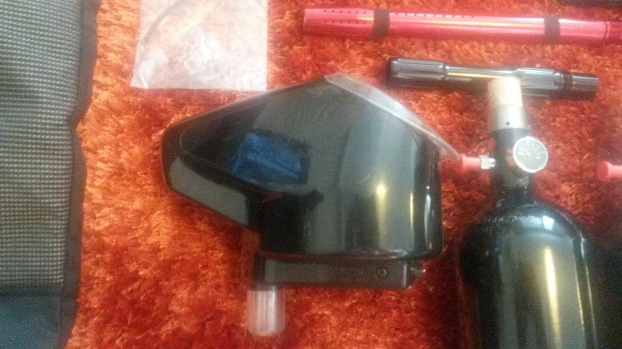 Myydään tarpeettomana setti. Noin 20 kertaa käyty pelaamassa. Pulloissa tosin leimat vanhentunut mut, pitäny ilmat sisällä varastoinnissa. Sisältää WGP Autococker Trilogy merkkaimen, kaksipainepulloa, VL Viewloaderin, sähkösyöttöinen VLocity Junior Viewloader, neljäbulkkia+vyö, camomaski, vaihtopiippu supistajalla, paintball housut koko 30-34 ja muutama tiiviste merkkaimeen.