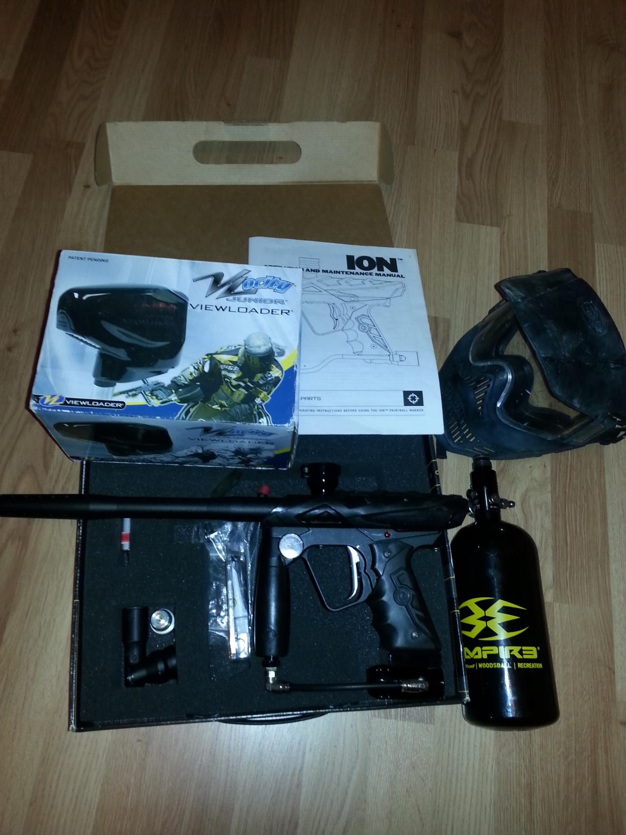 I'm selling an Ion paintball marker with a velocity viewloader hopper with upgraded chip. The gun shoots great. price is 180 euro, located in Vantaa near jumbo