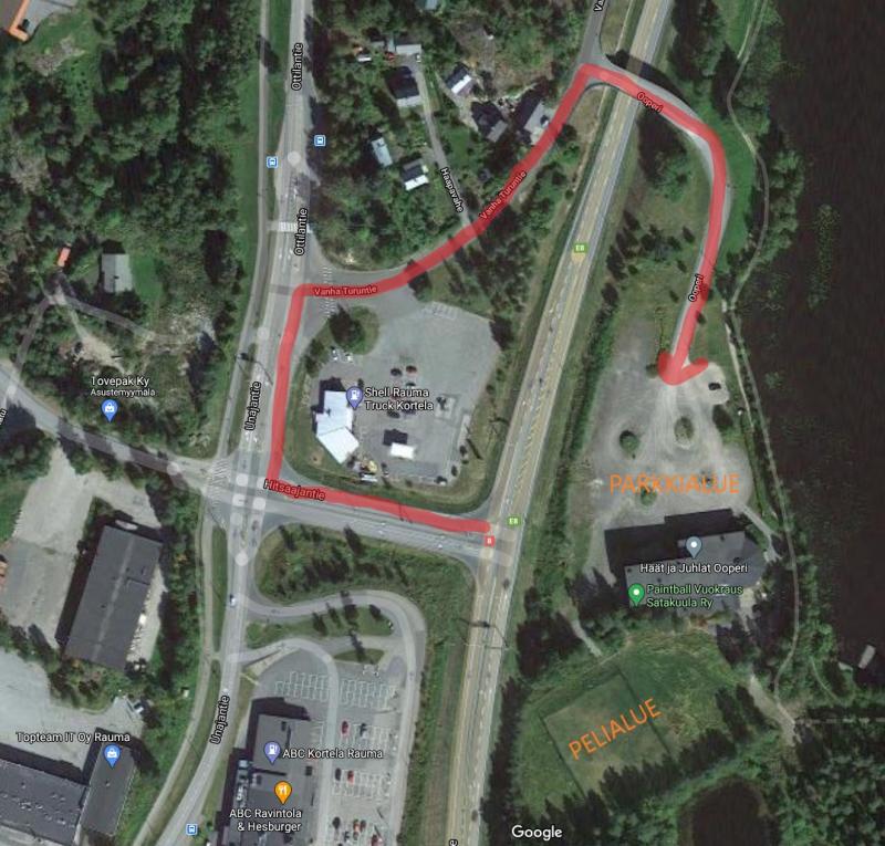 Pelipaikan virallinen osoite on Vanha turuntie 56, 26820 Rauma (Urheilutalo Ooperi). Navigaattoriin kun lyö osoitteen, niin pääsee ainakin parkkipaikalle johtavalle ylikulkusillalle ja opasteet ohjaavat siitä perille.