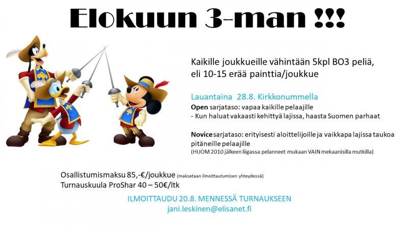 Elokuun 3-man turnaus 28.8. Kirkkonummella