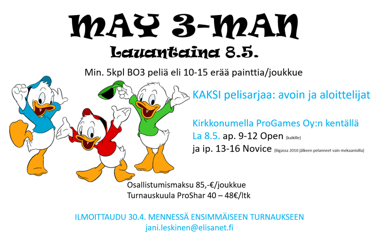 Kevään ensimmäinen turnaus! May 3-man lauantaina 8.5. Kirkkonummella.