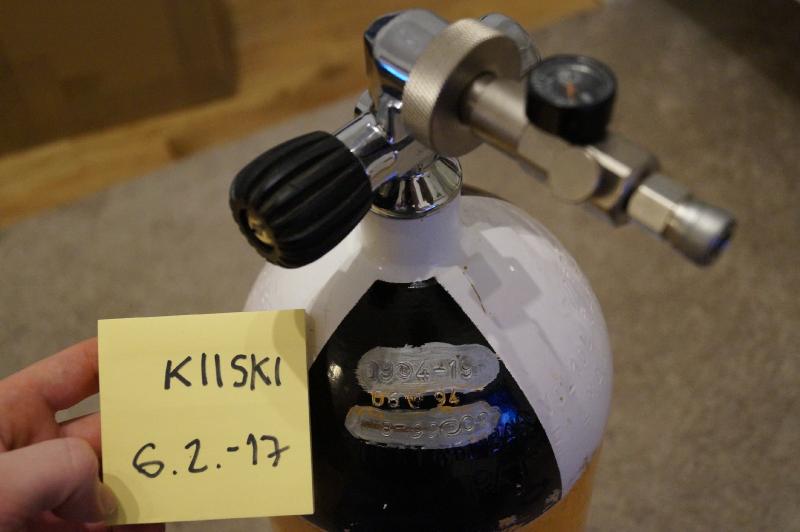 Myyntiin teräksinen otsikonmukainen pankkipullo ja täyttölaite. Täyttölaite ostettu Sissokselta, joten ei tarvitse pelätä sen räjähtävän kasvoille. Pullossa leimaa vielä muutamaksi vuodeksi.