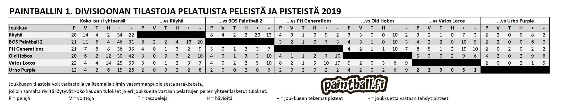Paintballin 1. divisioona 2019 sarjataulukko
